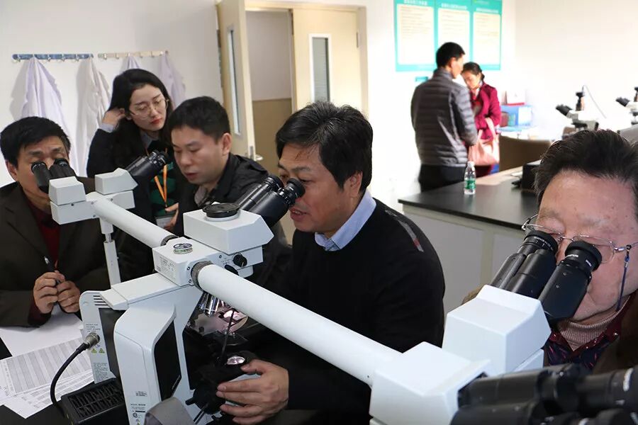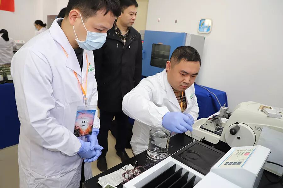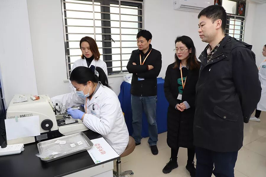 许三鹏教授观摩仙桃市第一人民医院参赛选手切片现场