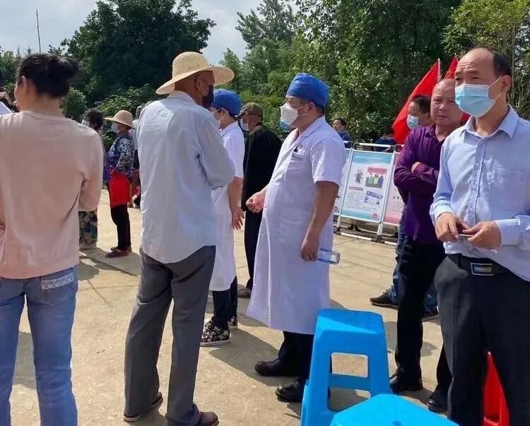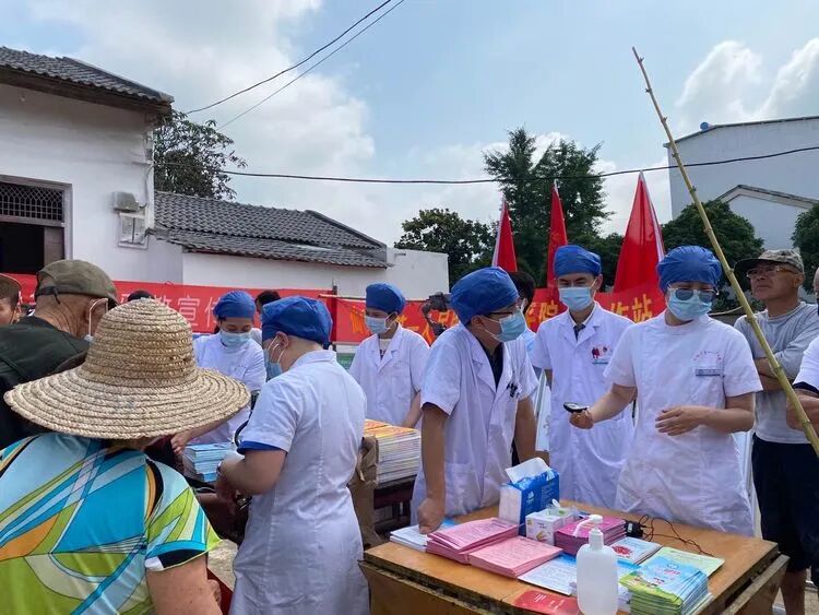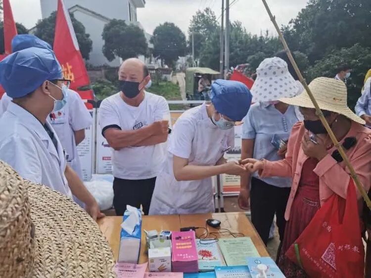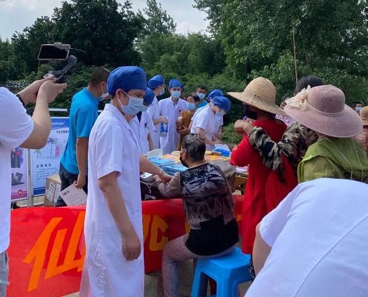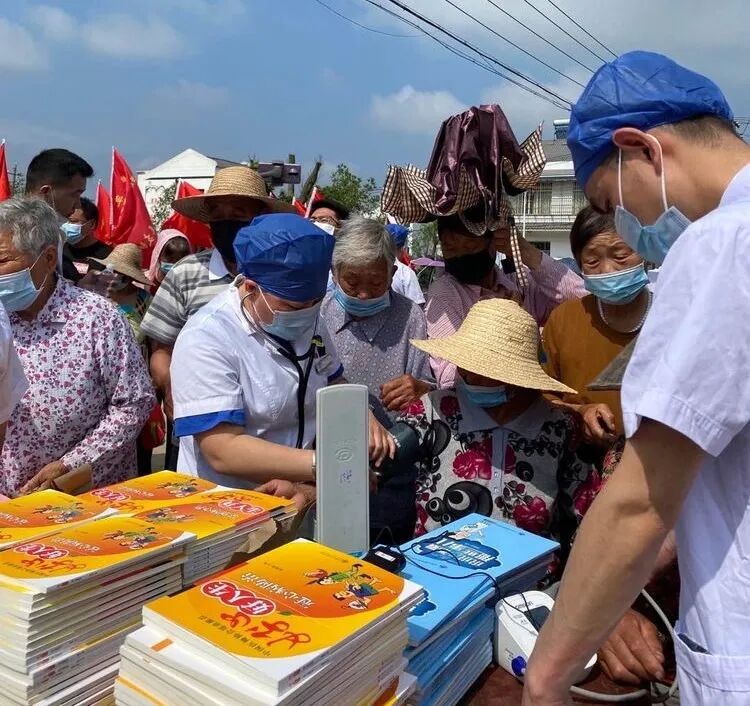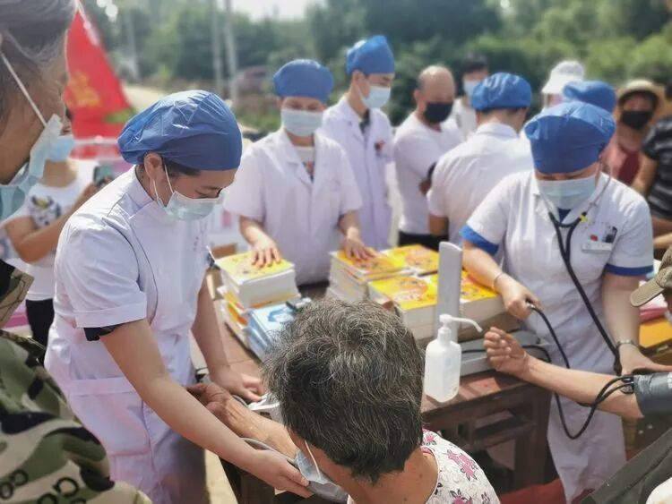 心血管内科医生张博在为村民测量血压,指导高血压患者按时吃药。