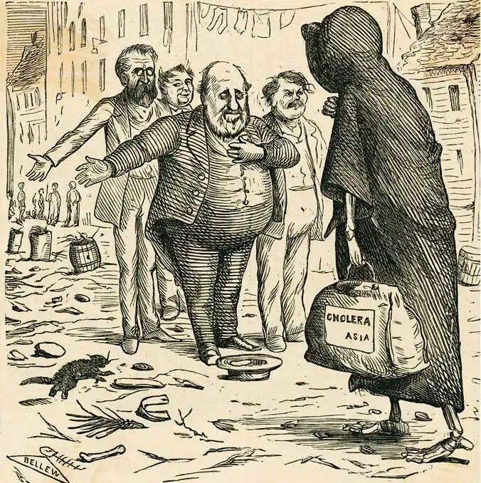 霍乱由于其发病迅速,往往出现患者突然倒毙,在欧洲造成巨大恐慌