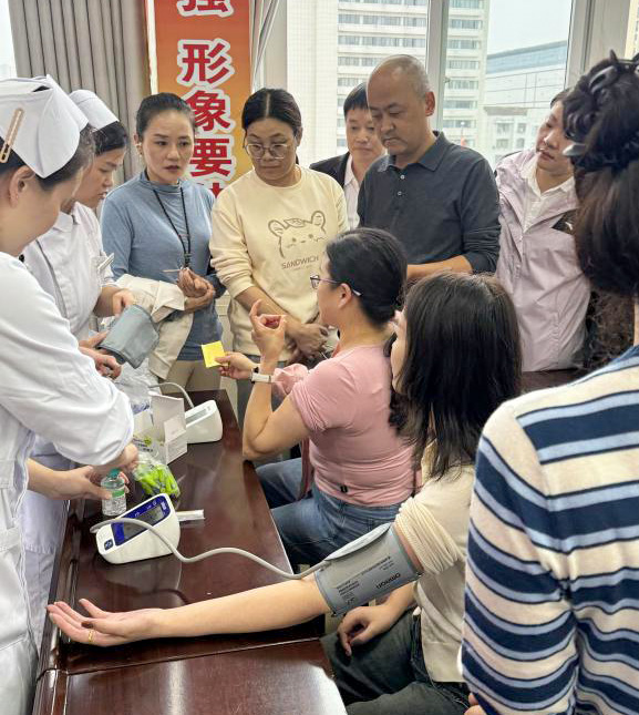 护理团队为大家测量血压、血糖,宣讲如何识别心肌梗死的典型症状,特别指出胸痛与肩背放射痛是危险信号,一旦出现必须立即就医。