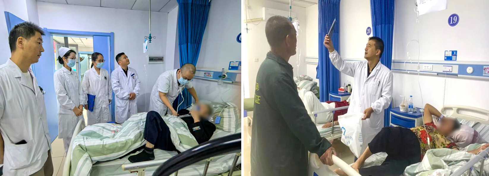 义诊结束后,市一医康复医学科主任刘体军、呼吸与危重症医学科二病区主任荣峰深入病房开展教学查房,结合疑难病例讲解诊疗思路与操作技巧。