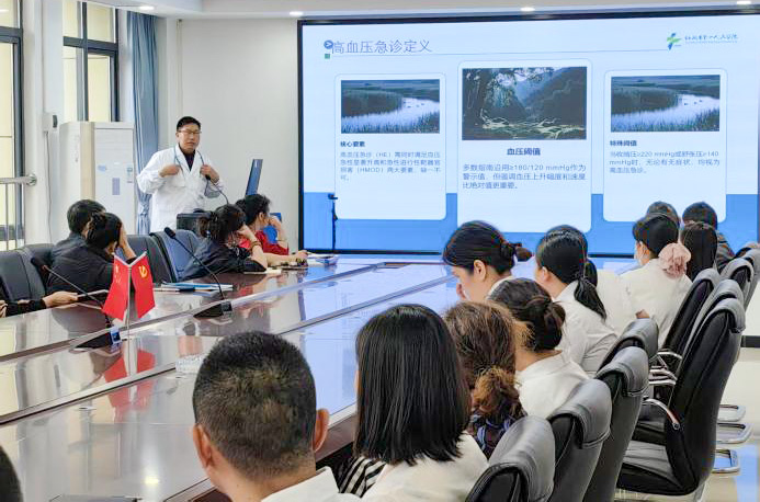 专题培训环节,急诊医学科主任周学才讲解《高血压急症的规范处置》;消化内科张雄辉医师解读《第六次全国幽门螺杆菌感染处理共识报告》;肾病内科护士长朱小明讲解《腹膜透析患者的护理》。培训内容贴合基层实际,助力基层医护人员更新知识、提升技能。