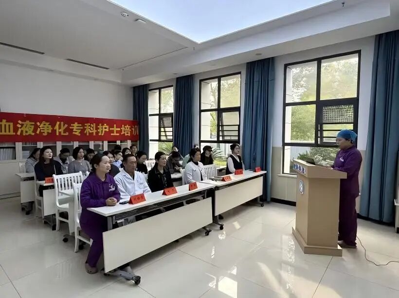 培训班课程设计紧密围绕血液净化临床实践需求,采用“理论授课+案例分析+一对一带教+操作考核”的全周期培养模式,内容全面。理论涵盖血液净化的基本原理、透析并发症的监测与防控、血管通路的护理、抗凝方案的个体化调整、透析患者的长期健康教育与心理支持等核心模块;考核对学员的上下机操作、内瘘穿刺、导管维护、并发症应急处理及医患沟通等关键技能进行了全面评估,将理论与实践紧密结合。