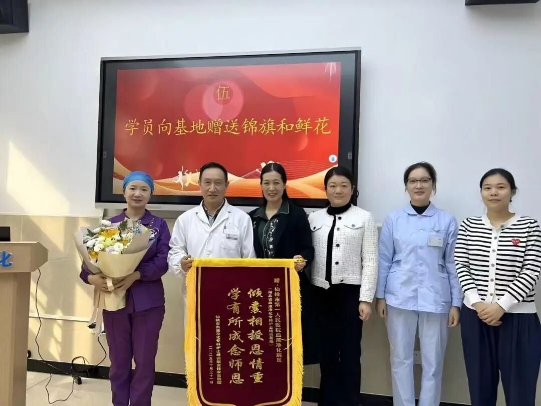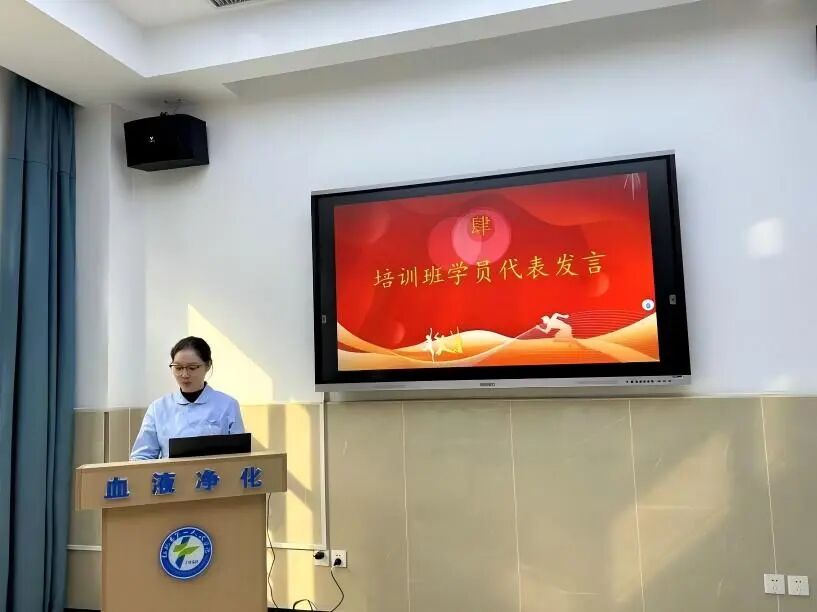 护理教师代表分享带教心得,寄语学员坚守职业初心;学员代表讲述成长历程,表示通过系统培训,提升了专业技能,深化了对血液净化护理事业的理解,未来必将学以致用,服务患者,并向基地赠送锦旗致谢。