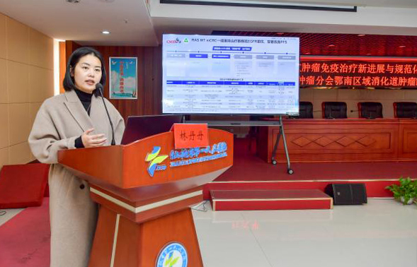 学术讲座环节,武汉大学人民医院胃肠肿瘤II科主任林丹丹教授作《胃肠道肿瘤免疫治疗新进展与规范化诊疗》主题授课,介绍免疫检查点抑制剂、CAR-T细胞治疗、溶瘤病毒治疗等前沿技术进展,阐述免疫治疗在不同类型胃肠道肿瘤中的应用策略与规范化诊疗流程。