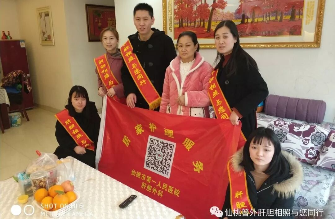 休息的人员早早来到科室,考虑路上堵车可能,我们比预算时间提早半小时出发。下午两点,我们来到了居住在仙桃工业园船湾附近的刘女士家里。刘女士因胆囊结石伴急性胆囊炎、胆总管结石伴胆管炎于1月9日入住我科,后行胆囊切除术+胆总管切开取石术+T管引流术,术后经过医护人员的精心护理于1月27日带T管顺利出院。再次见到我们,刘女士非常激动的迎接,说没想到出院后不仅定期有科室责任护士的随访电话,还有医护人员亲自登门提供的居家护理,让她十分感动。经过短暂的交流后,我们为她进行了管道口的换药及T管的护理,匆匆启程赶赴下一名患者家......
