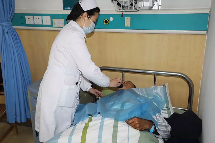 (市一医老年病科护理人员为老人剃须)
