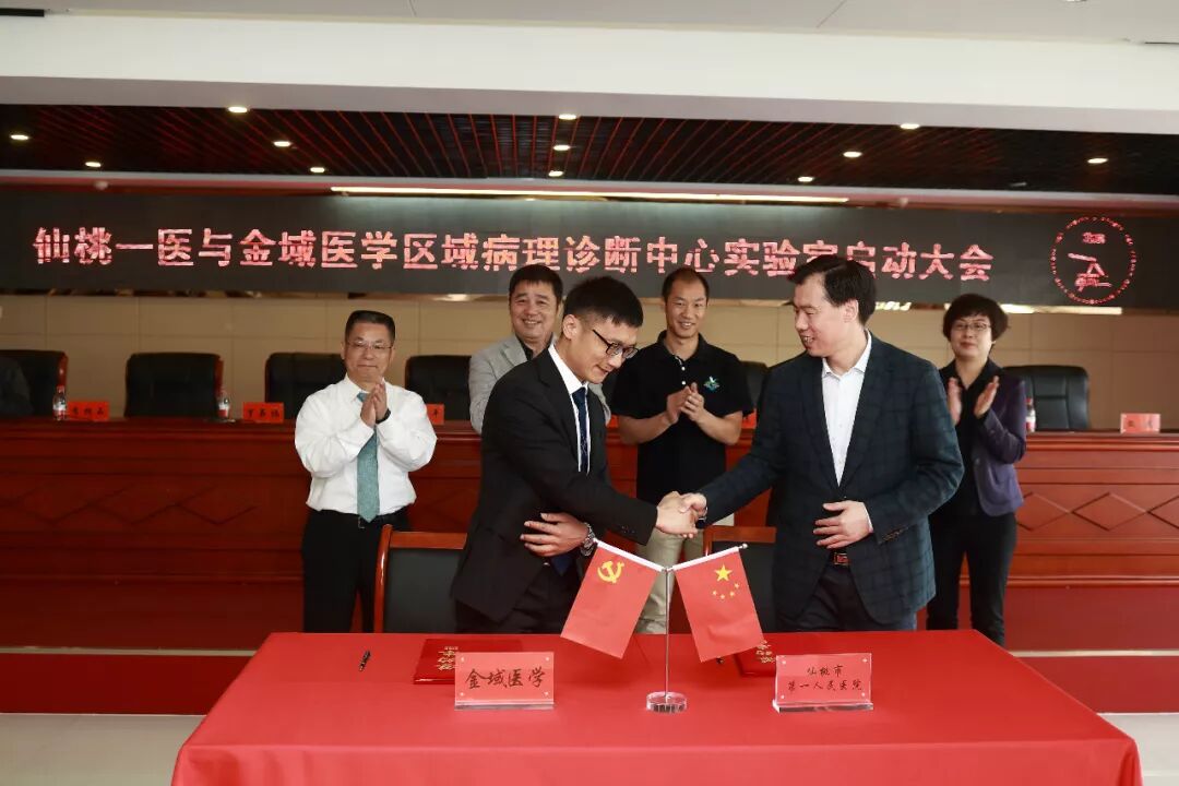 4月24日上午,由仙桃市第一人民医院与广州金域医学检验集团联合共建的江汉平原首家区域病理诊断中心实验室启动仪式在仙桃一医隆重举行。