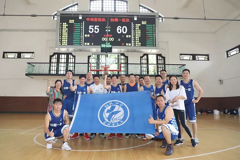 最后,以仙桃一医叶长江院长一记精彩投篮将比分锁定在60:55,比赛圆满收官。