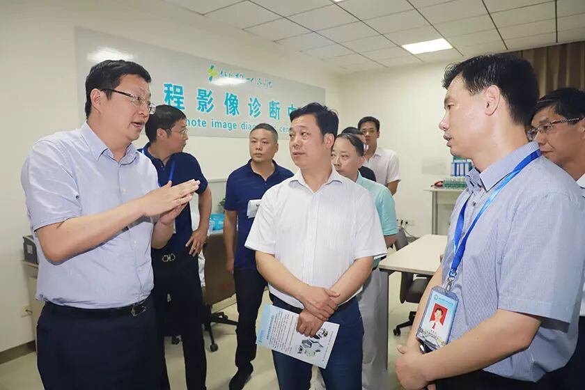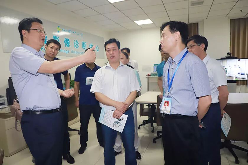调研组参观了市一医远程影像诊断中心,了解武汉大学中南医院与市一医构建紧密型医联体,以及以市一医为中心、各基层医疗机构为基础的医共体建设情况,对市一医全力推进公立医院改革,整合优质资源,提升医疗和服务质量,积极落实分级诊疗,提高基层医疗机构的疾病诊治水平,千方百计解决人民群众“看病难”问题给予了肯定。