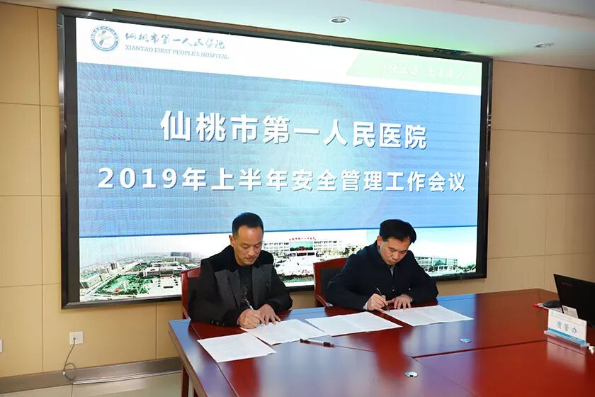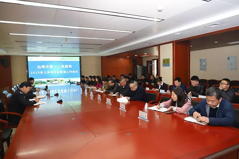 3月28日下午,仙桃市第一人民医院召开2019年上半年安全管理工作会议,全体在家院领导,保卫科、后勤保障科、物资供应科、医学装备科、药学部、公共卫生科等相关科室及班组负责人参加会议。党委委员、副院长王仕远主持会议。