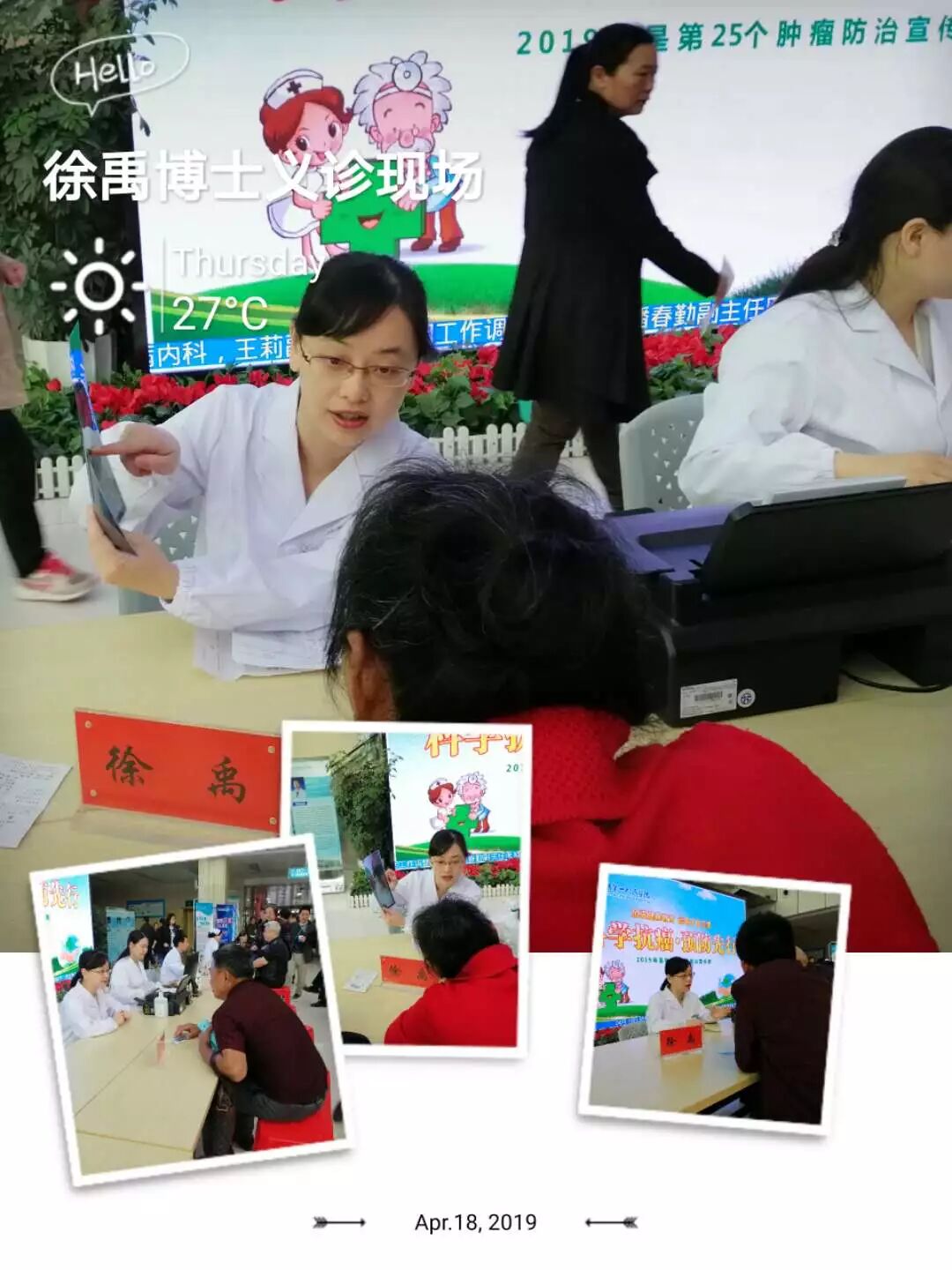 除知识讲座外,4月18日肿瘤科在医院门诊大厅举行了免费义诊,向广大群众发放防癌治癌宣传手册,专家团队热情接待每一位前来咨询的市民,耐心细致地答疑解惑。