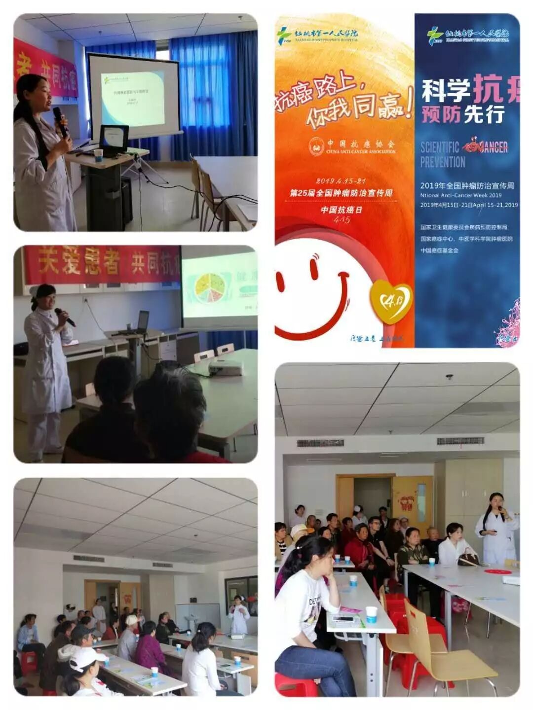 本次宣传周活动的主题为“科学抗癌,预防先行”。活动期间,肿瘤科举办了6场科普知识讲座,并邀请武汉大学中南医院放化疗科徐禹教授,就患者最关心的癌症防治问题进行现场互动、细致解答,全面普及防癌治癌基本知识,赢得了现场患者及其家属的好评。