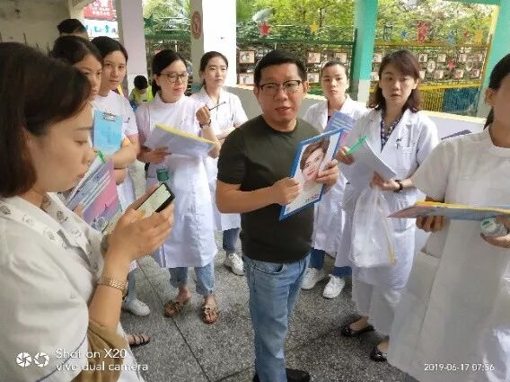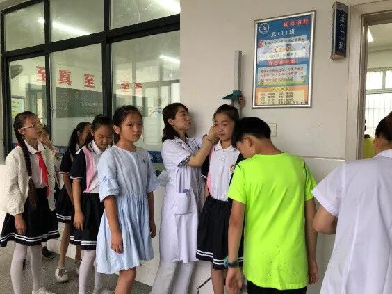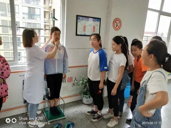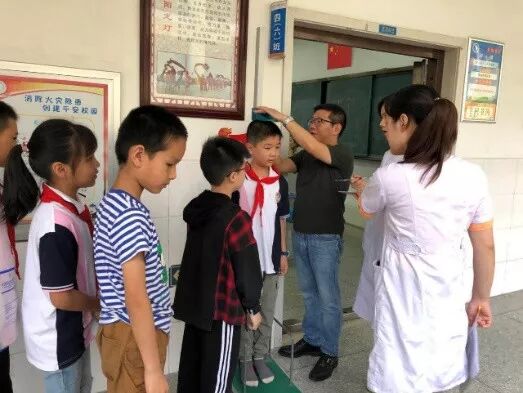 6月17日,仙桃市第一人民医院儿科副主任杨凡,带领儿科医护人员和内科一支部党员志愿者组成的体格筛查团队走进市实验三小,为全体学生进行体格检查。