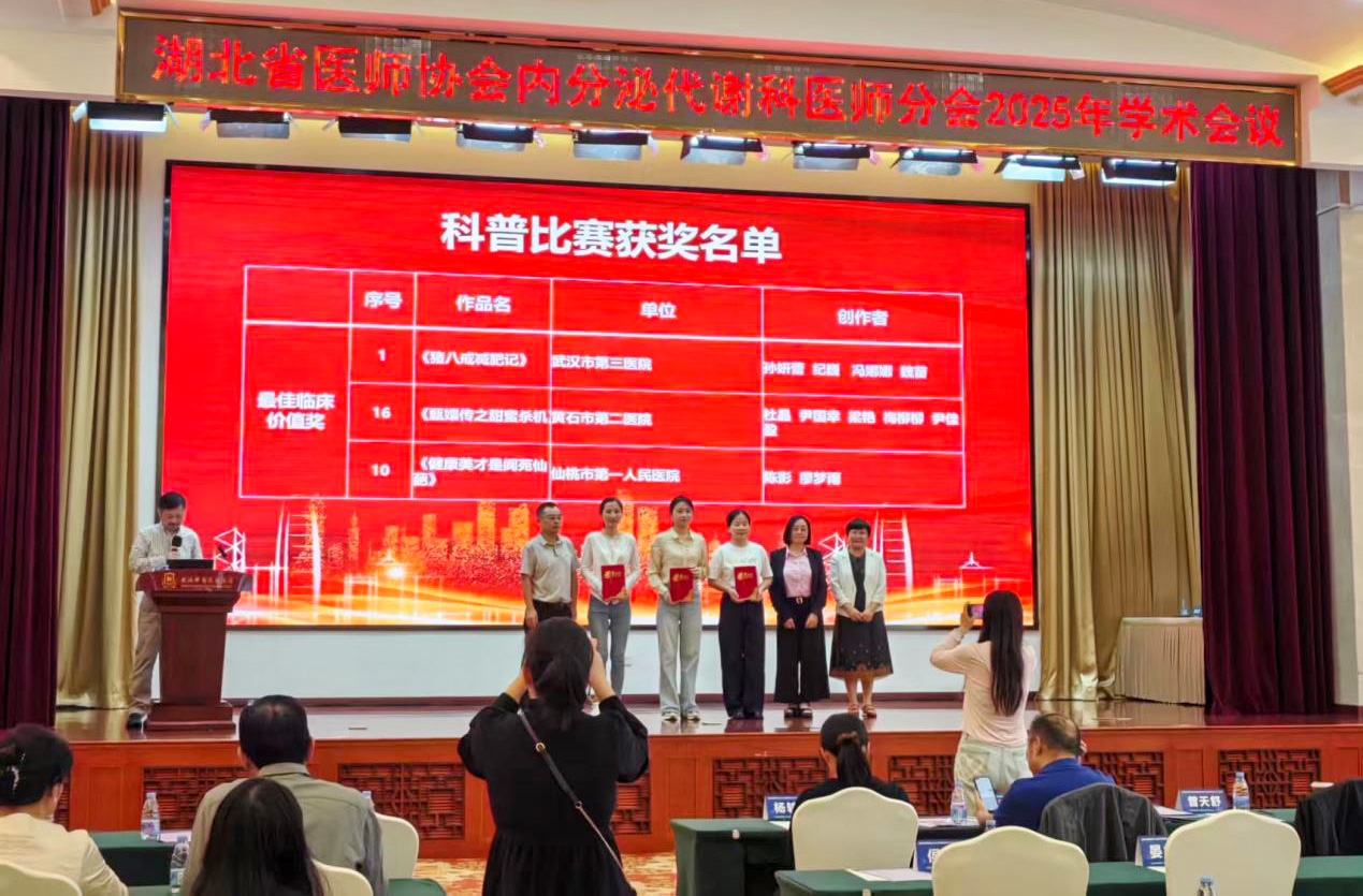 近日,由湖北省医师协会主办的“湖北省医师协会内分泌代谢科医师分会2025年学术会议”在武汉召开。本次会议创新构建“学术报告-青年竞赛-科普创新”三维交流矩阵,全面覆盖内分泌代谢领域各亚专科。仙桃市第一人民医院内分泌科团队在此次盛会中表现优异,荣获两项佳绩。