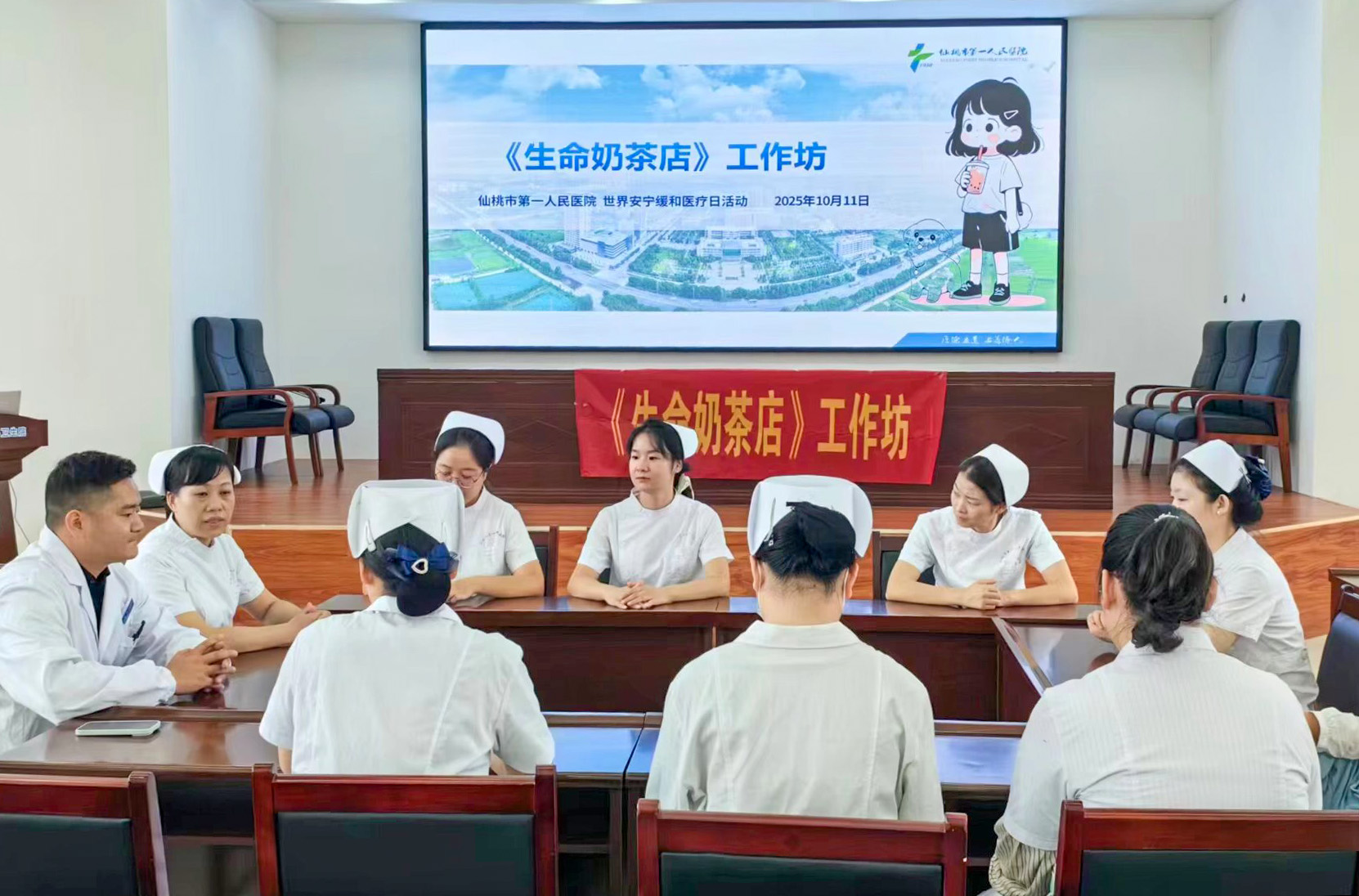 市一医安宁疗护团队与市安宁疗护中心团队开展《生命奶茶店》工作坊,在市一医肿瘤科一病区护士长杨蓉的带领下,探讨安宁疗护临床实践中的经验与挑战,交流如何为患者提供更具温度的关怀服务。