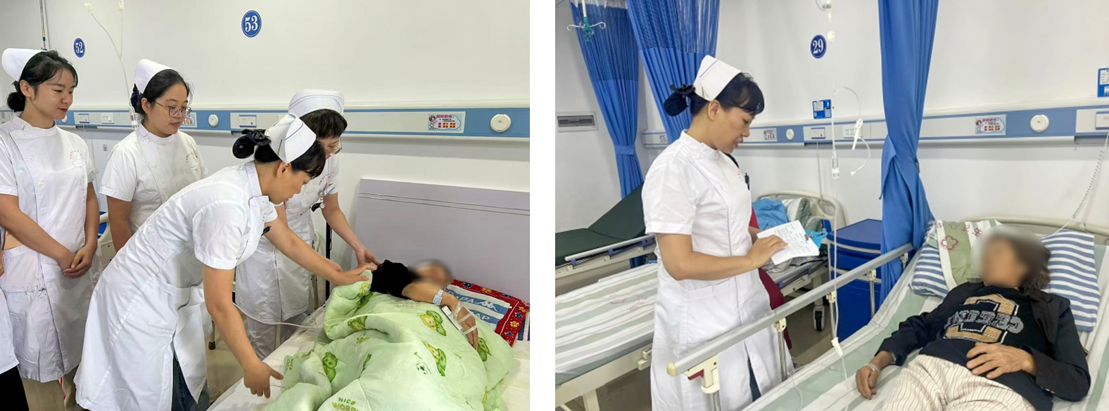 随后,市一医肿瘤科一病区护士长杨蓉、二病区护士长许娟带领安宁疗护、肿瘤专科、静脉治疗等多专业护理团队开展教学查房,以实地交流促进优质护理资源共享与技术同质化提升。