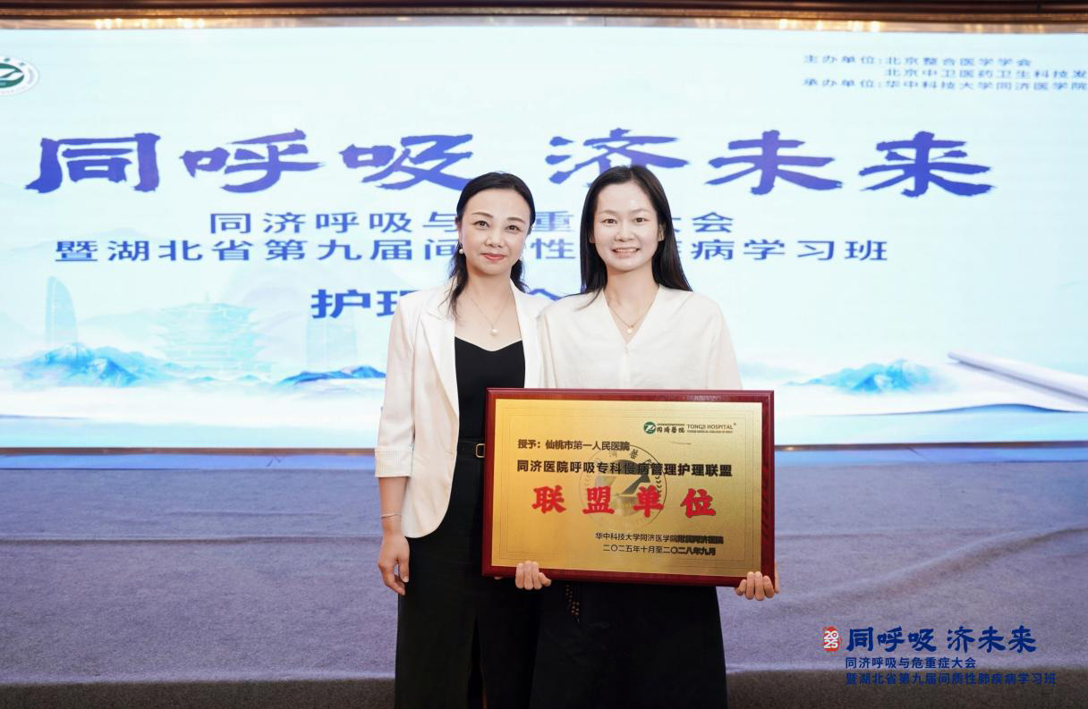 10月12日,由华中科技大学同济医学院附属同济医院主办的呼吸专科慢病管理护理联盟成立暨授牌仪式在武汉举行。该联盟旨在通过资源共享、协同发展的模式,提升成员单位的呼吸慢病管理能力和专科护理同质化水平。仙桃市第一人民医院呼吸与危重症医学科二病区护士长任敏代表医院参加活动并接受授牌。