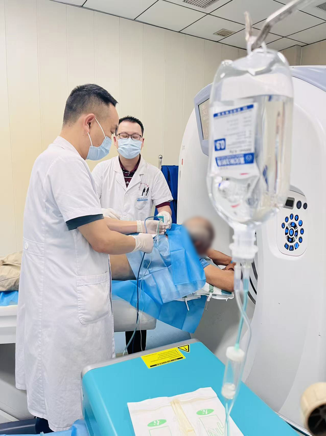 在充分评估病情并取得患者与家属同意后,市一医胸外科团队决定为李老汉实施“肺结节消融术”。手术由放射影像科辜赶超医师与胸外科杜卓副主任医师协同完成。手术团队在CT引导下精确定位病灶,经局部麻醉后,将消融导管经皮穿刺置入结节部位,通过高温热消融仅用时约3分钟即成功灭活病灶。整个操作过程约半小时,患者全程保持清醒,未诉明显不适。