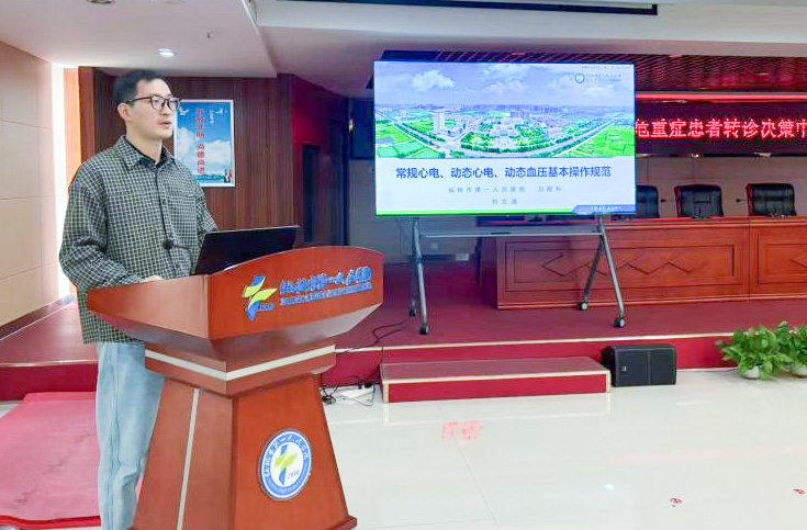 市一医功能科刘文通主管技师讲解《常规心电、动态心电、动态血压规范化操作流程及注意事项》,详细说明规范操作要点与干扰处理方法。