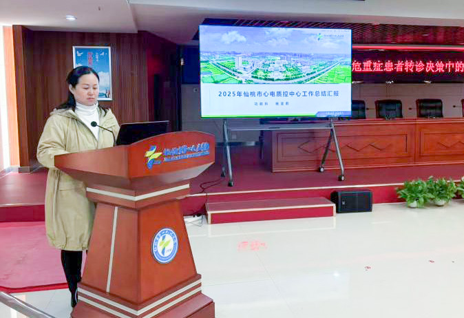 仙桃市心电图质量控制中心主任、市一医功能科主任杨亚莉作质控中心年度工作总结汇报,回顾全市心电诊断质量提升与规范化推进工作,并提出下阶段工作重点。