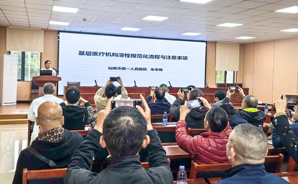 义诊结束后,市一医神经内科主任昌军主持开展专题讲座,毛嘴中心卫生院、杨林尾镇卫生院、郭河镇卫生院等基层医疗机构医护人员参加。
