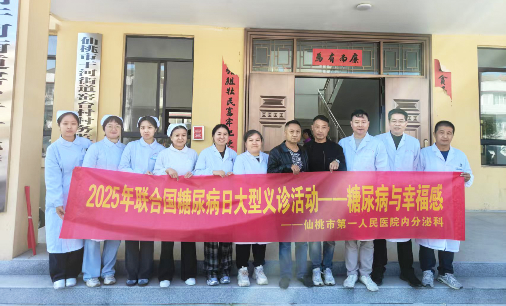 2025年11月14日是第19个"联合国糖尿病日",今年的主题是"糖尿病与幸福感"。为响应全球倡议,提升基层群众糖尿病防治意识,仙桃市第一人民医院内分泌科联合心血管内科、呼吸与危重症医学科、精神科、康复医学科、中医科、功能科和超声影像科等多学科医护团队,在干河办事处窑台村开展公益义诊活动,将专业医疗服务送到群众身边。