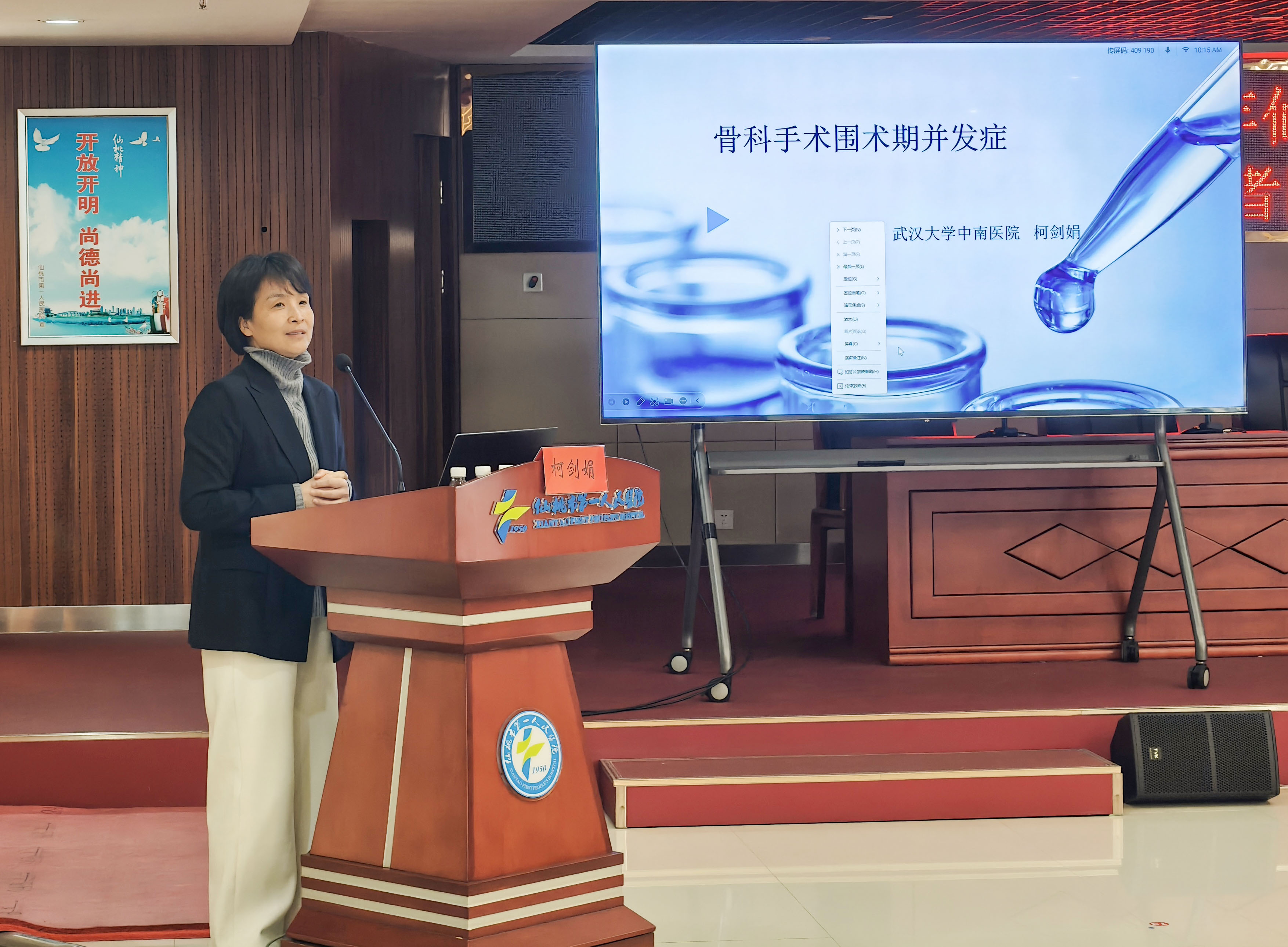 武汉大学中南医院柯剑娟教授作《骨科手术围术期并发症》主题授课。