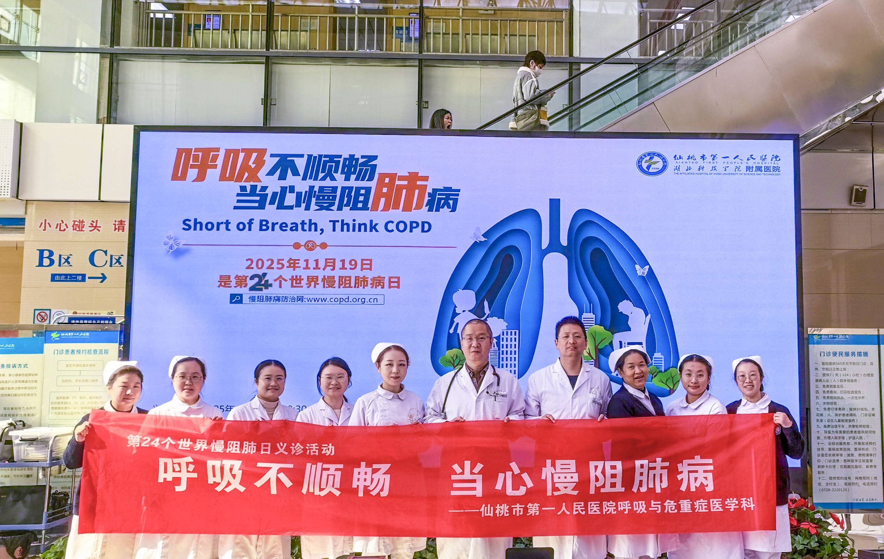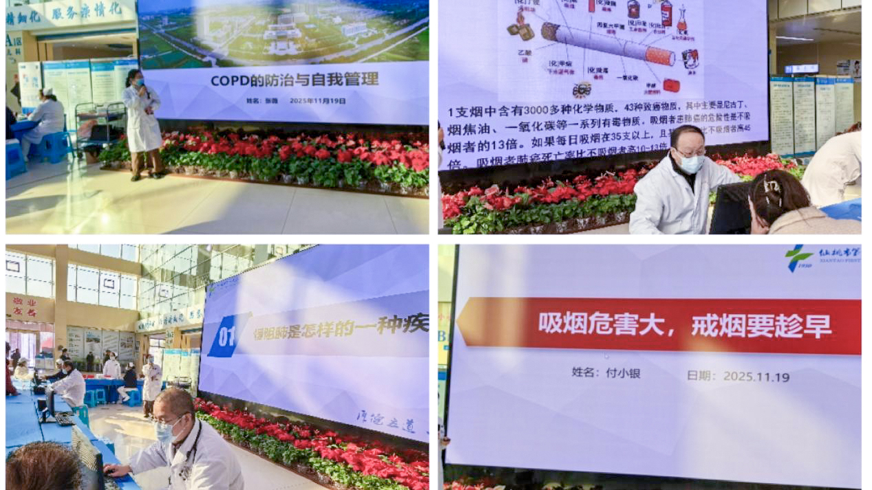 2025年11月19日是第24个“世界慢阻肺病日”。为贯彻落实《“健康中国2030”规划纲要》,提高公众对慢阻肺病的认知与防控能力,仙桃市第一人民医院呼吸与危重症医学科在门诊大厅举办主题义诊活动,为市民提供专业呼吸健康服务。