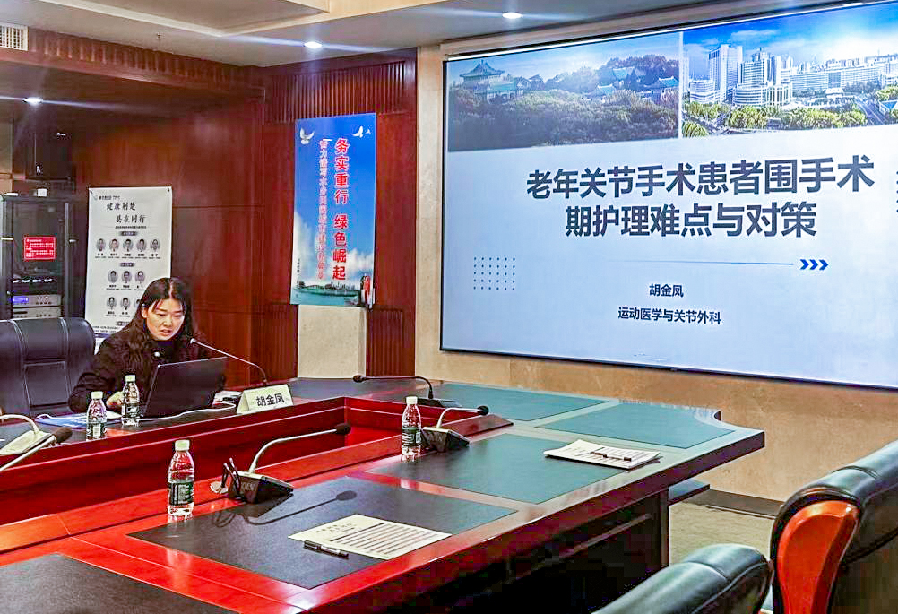武汉大学人民医院运动医学与关节外科胡金凤护士长作《老年关节手术患者围手术期护理难点与对策》主题授课。