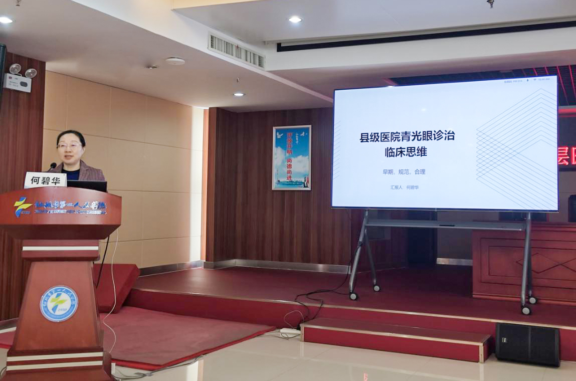 仙桃爱尔眼科医院区域总院长何碧华讲解《县级医院的青光眼诊治的临床思维》。