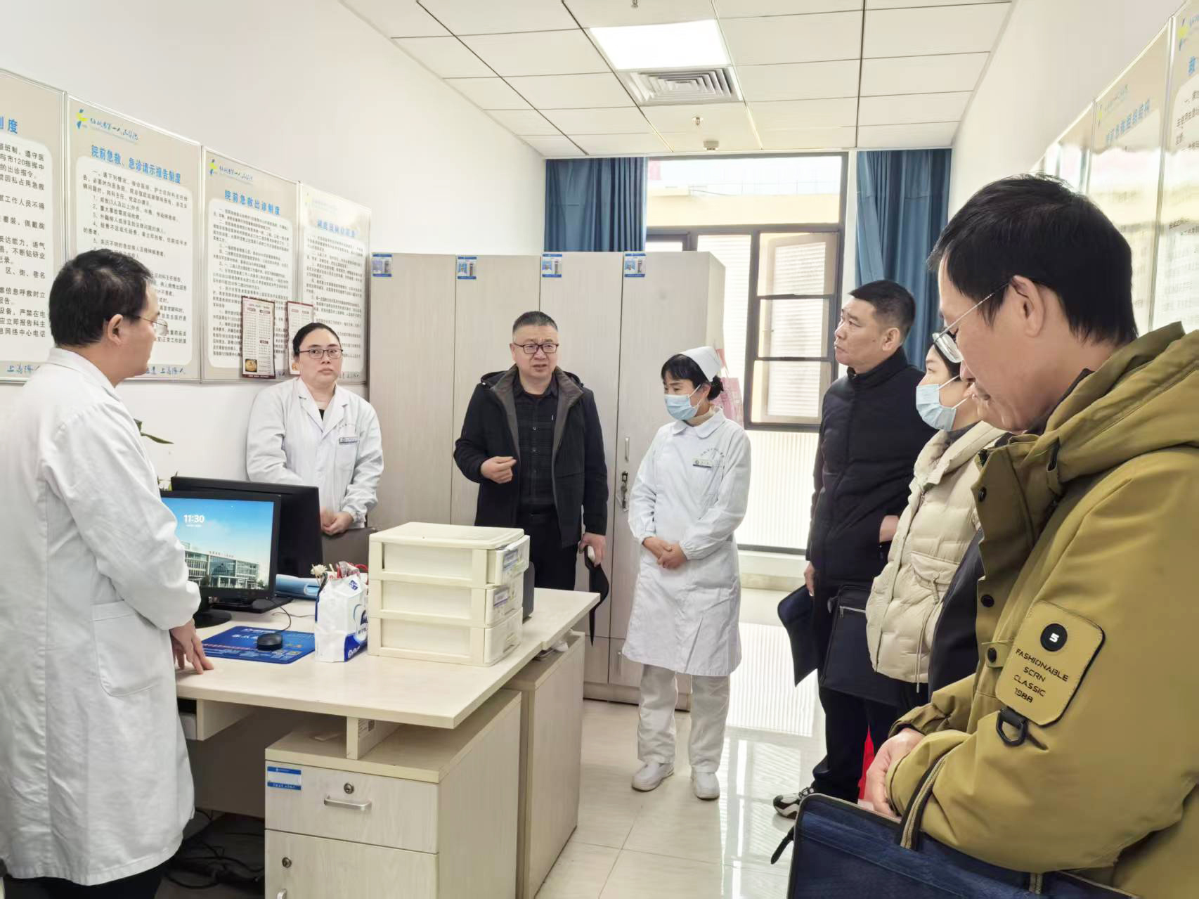 检查组重点考察了急危重症患者救治能力。在急诊复苏室,市一医急诊医学科护士长周云霞汇报了抢救设备、人员配备、药品及车辆管理等情况,潘辉军医生现场演示了心肺复苏机操作,并介绍了科室人才梯队。
