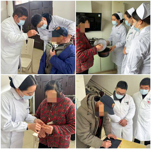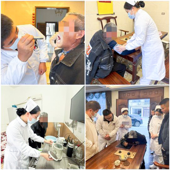 每到一家,耳鼻咽喉科副主任彭炜都会细致地为患者检查气管套管,仔细询问吞咽是否顺畅、呼吸是否平稳。“气管套管就像咱们的‘新声门’,日常清洁和湿化一定要像爱护眼睛一样细致,这能避免很多并发症。”他一边演示,一边用最通俗的话语向家属解释护理要点。护士长叶方带领的护理团队则手把手指导家属如何进行气管套管护理及消毒、气道湿化等,并耐心地为患者测量血压,评估整体恢复状况。