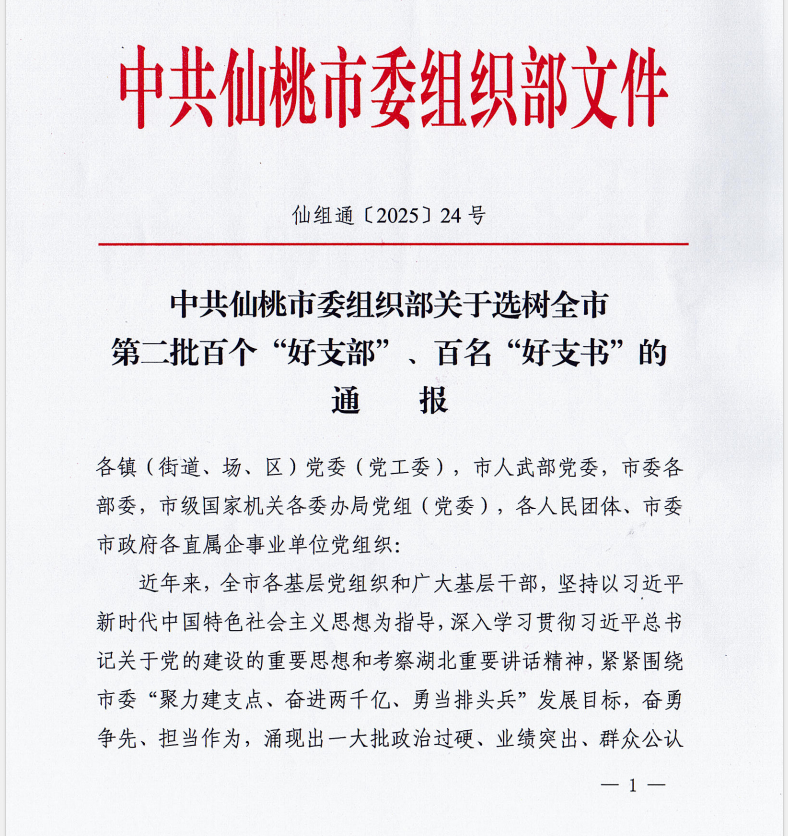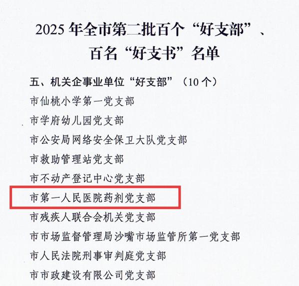 近日,仙桃市委组织部通报全市第二批百个“好支部”和百名“好支书”表彰名单,仙桃市第一人民医院药剂党支部凭借党建与业务深度融合及突出的惠民成效,成功入选全市百个“好支部”,为医院党建品牌建设再添亮色。