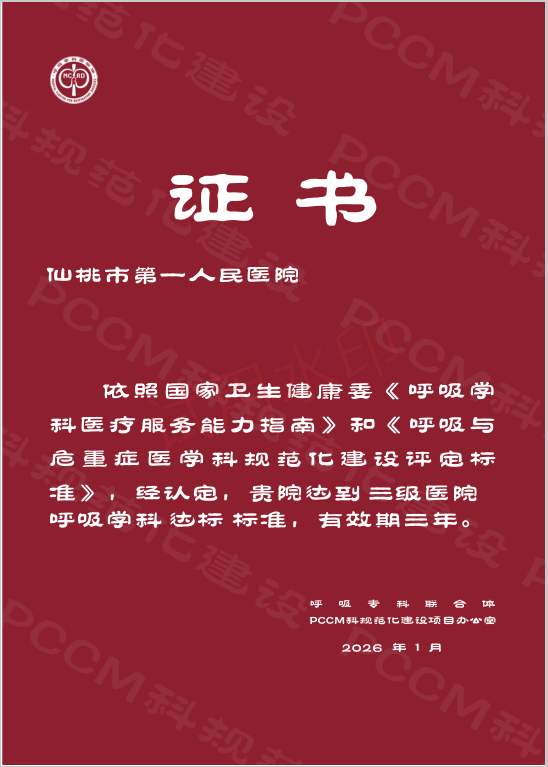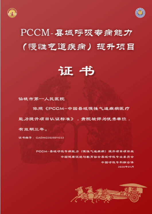 近日,仙桃市第一人民医院呼吸与危重症医学科(PCCM)连获两项国家级殊荣:顺利通过国家呼吸与危重症医学科规范化建设工作小组的严格评审,获评“国家呼吸与危重症医学科规范化建设三级医院达标单位”;同时,在县域慢性气道疾病提升项目建设考核中,凭借全程管理服务与显著成效,荣获“县域慢性气道疾病提升项目优秀单位”称号。这标志着仙桃一医呼吸学科规范化建设和慢性气道疾病防治水平已跻身全国县级医院先进行列,为区域呼吸健康服务体系建设提供了有力支撑。