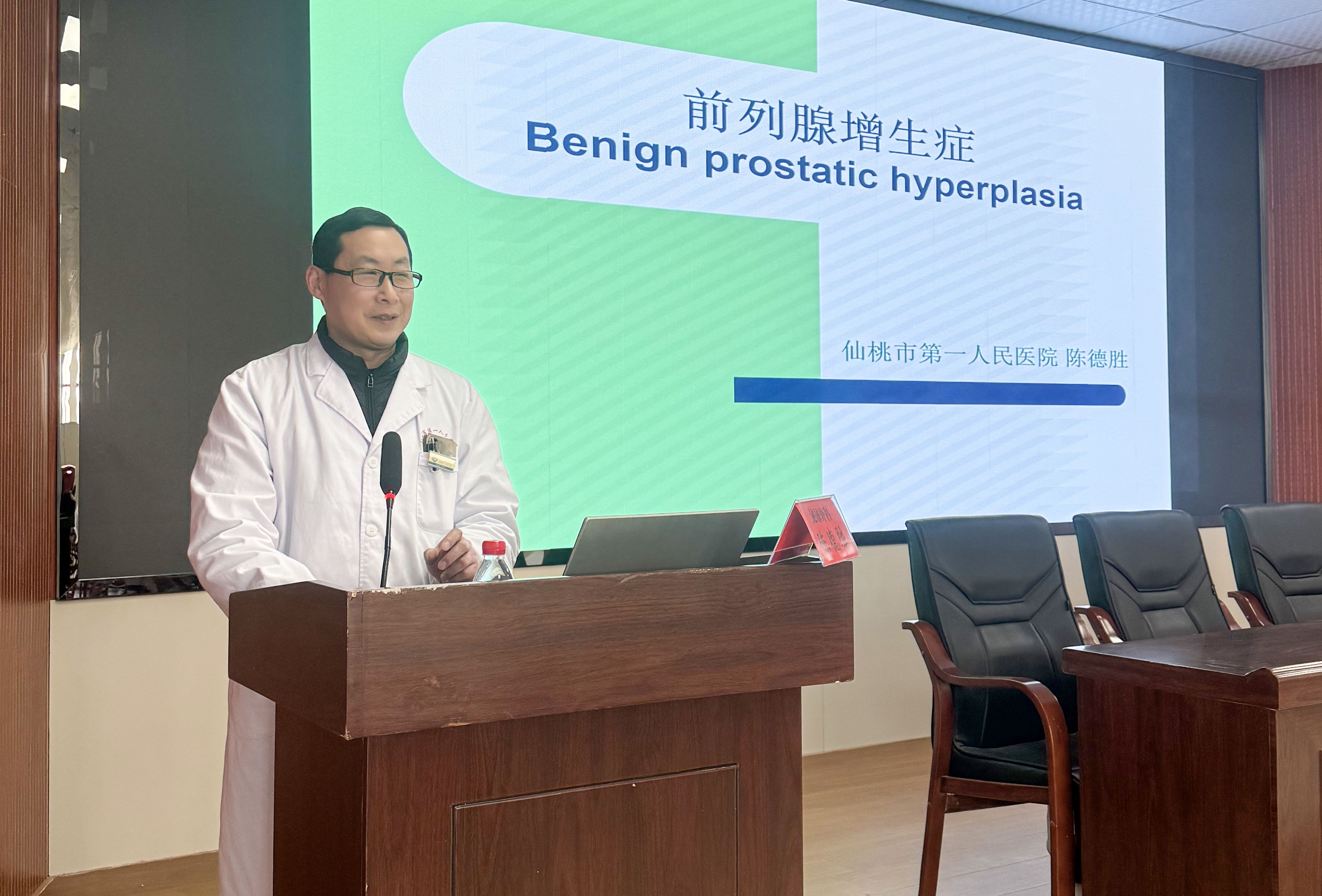 泌尿外科主任陈德胜以《前列腺增生症》为题,重点讲解该疾病的症状评估与用药指导。