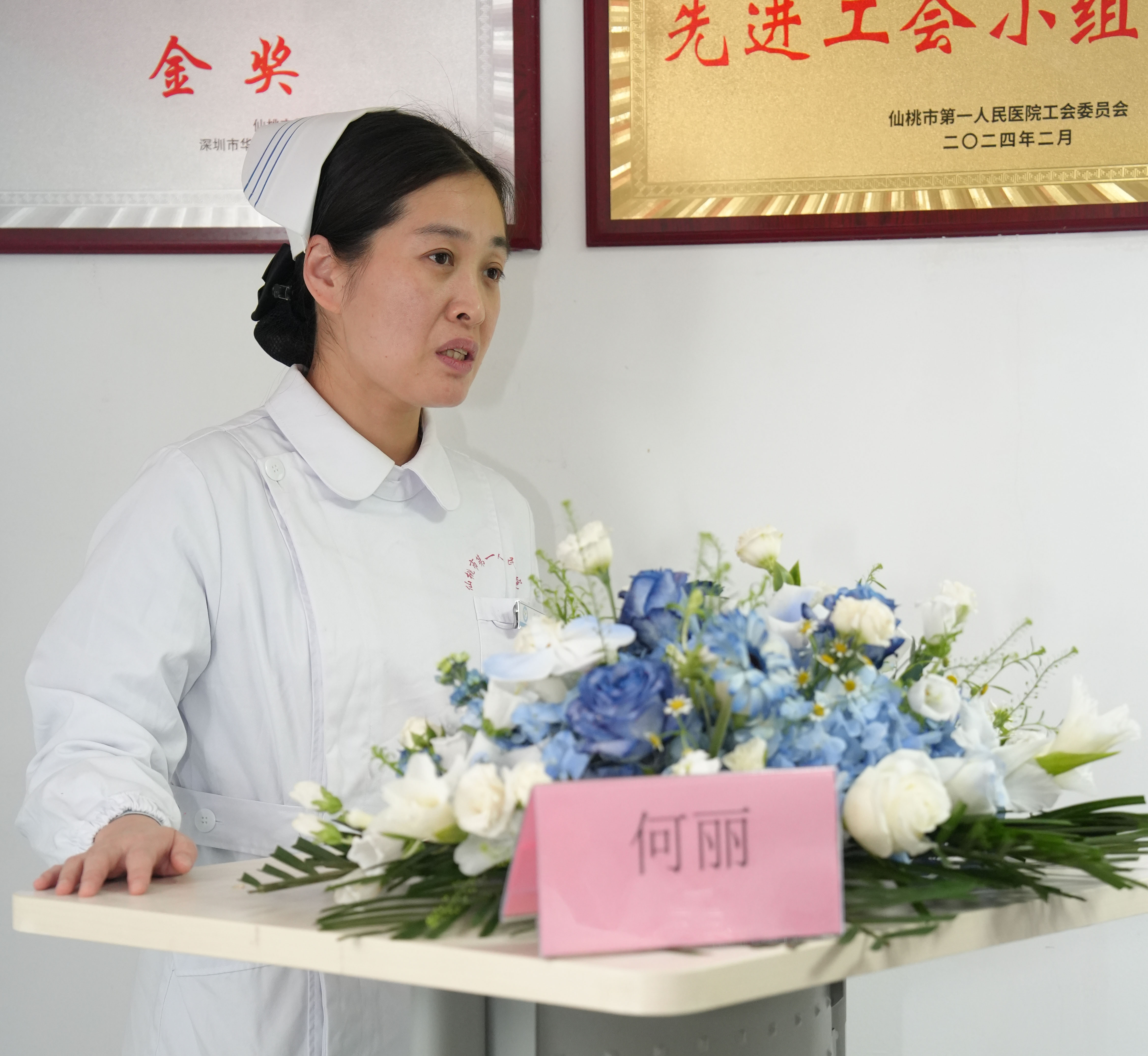 互动问答环节,参会人员积极作答,三名护士长凭借扎实专业知识获奖。