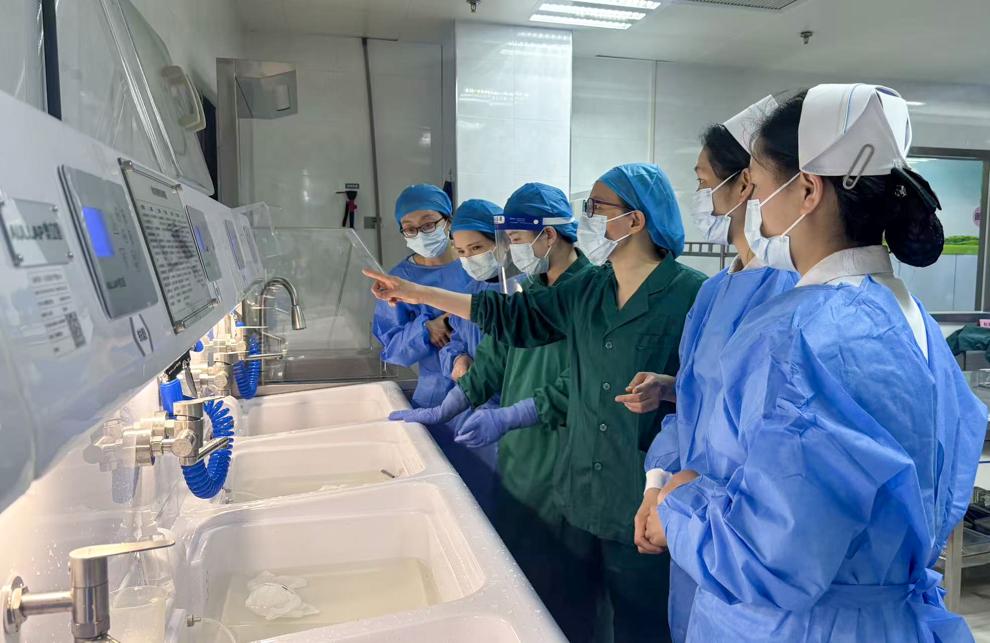 随后,参会人员分批有序参观消毒供应中心各功能区域,观摩器械清洗、包装、灭菌等关键操作,并参与器械清洗质量检查、规范包装、化学指示卡判读等互动体验。专业人员全程答疑指导。