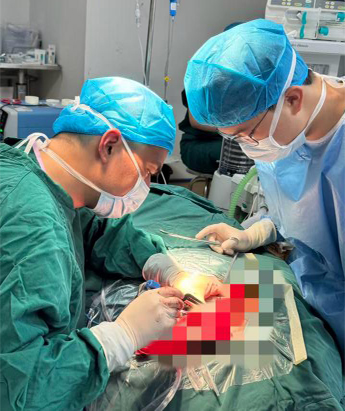 术中,副主任熊子云与印爱军副主任医师、祁宇扬医师为患者实施“左侧腮腺巨大肿物切除+腮腺部分切除+面神经解剖术”。手术团队精细操作,在高倍显微镜下分离、定位下颌缘支后,逐一分离面神经分支,小心避开血管与周围组织,精准剥离肿瘤。经过2小时奋战,完整切除直径约5cm的巨大肿物,且完美保留了面神经功能,实现了“除瘤不毁容、护神保功能”的目标。