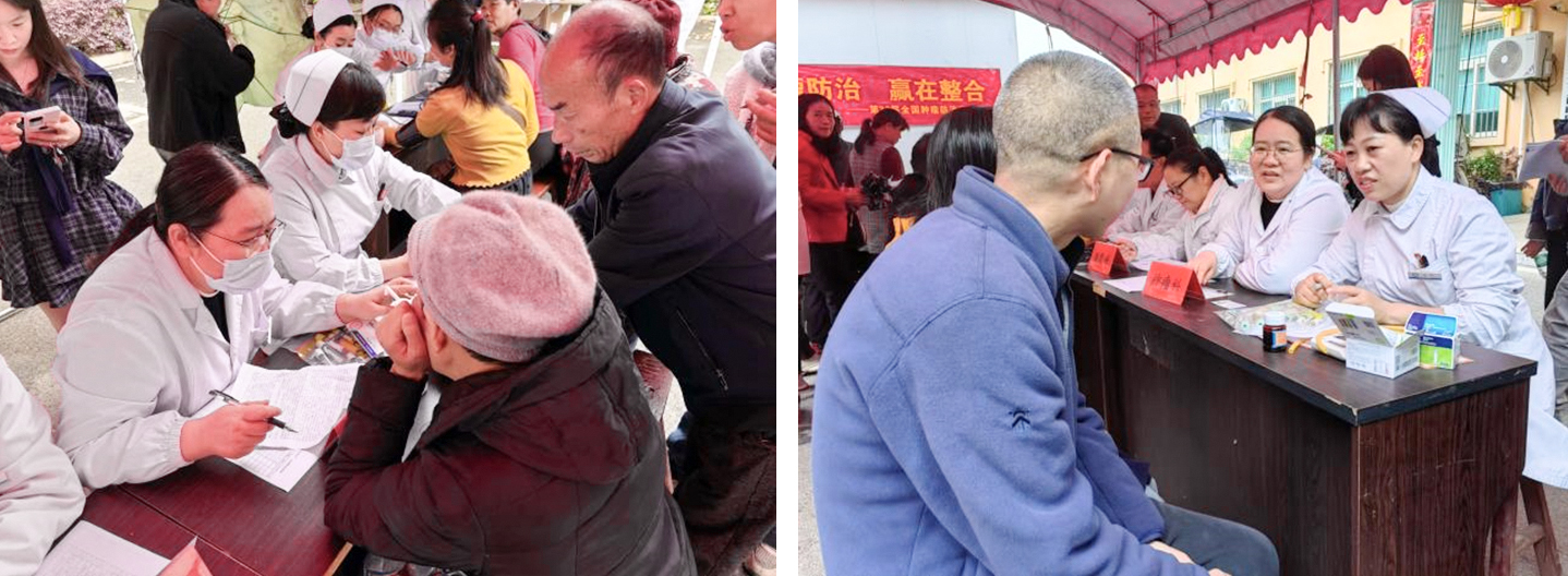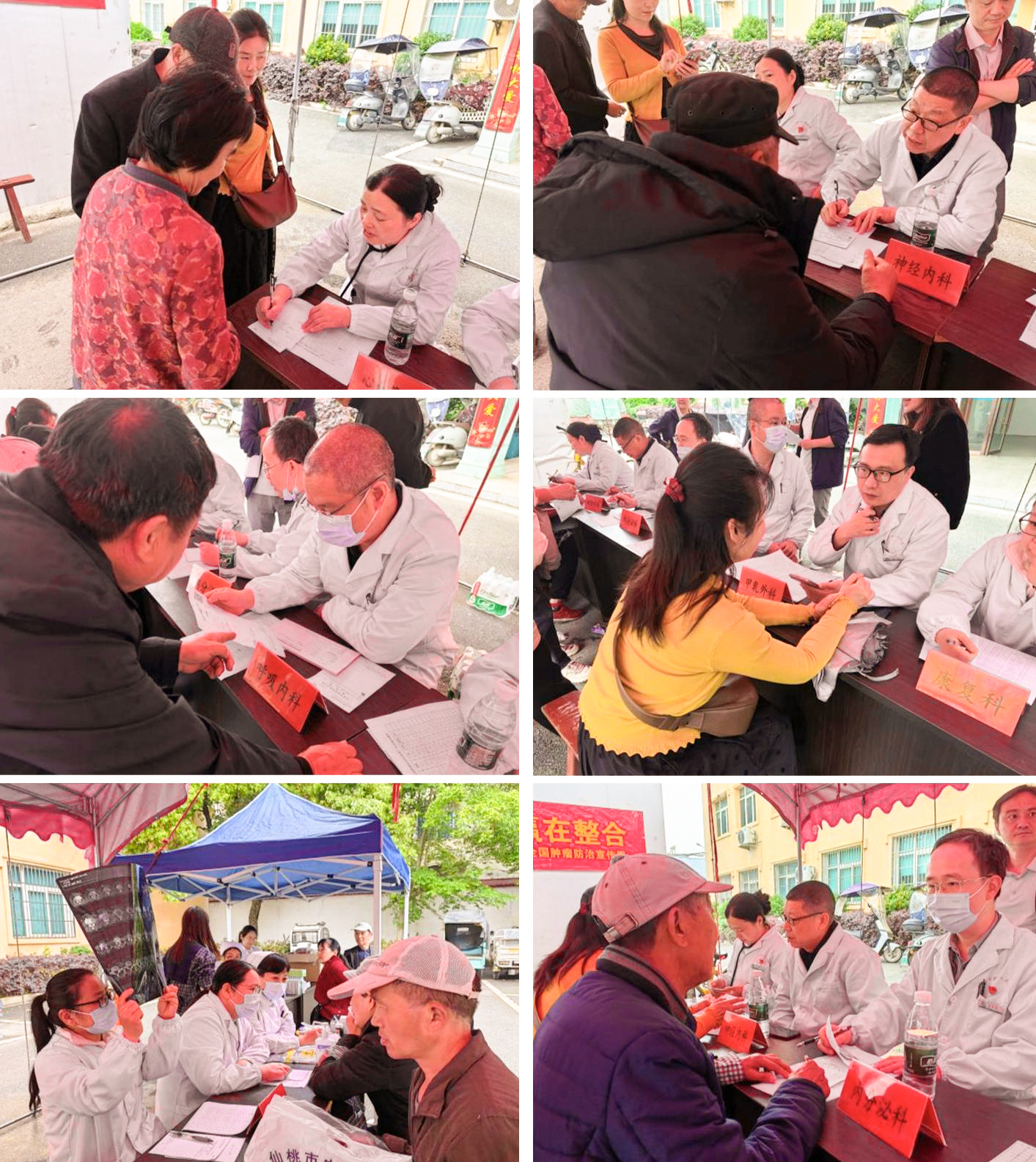 除了院内活动外,仙桃一医肿瘤科、心血管内科、呼吸与危重症医学科、内分泌科、神经内科、康复医学科、甲乳外科医护团队及药学部工作人员,走进杨林尾镇,将优质医疗资源送到基层群众身边。