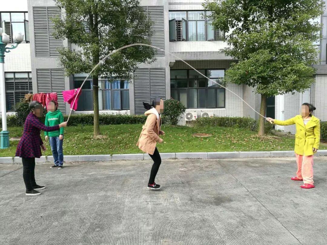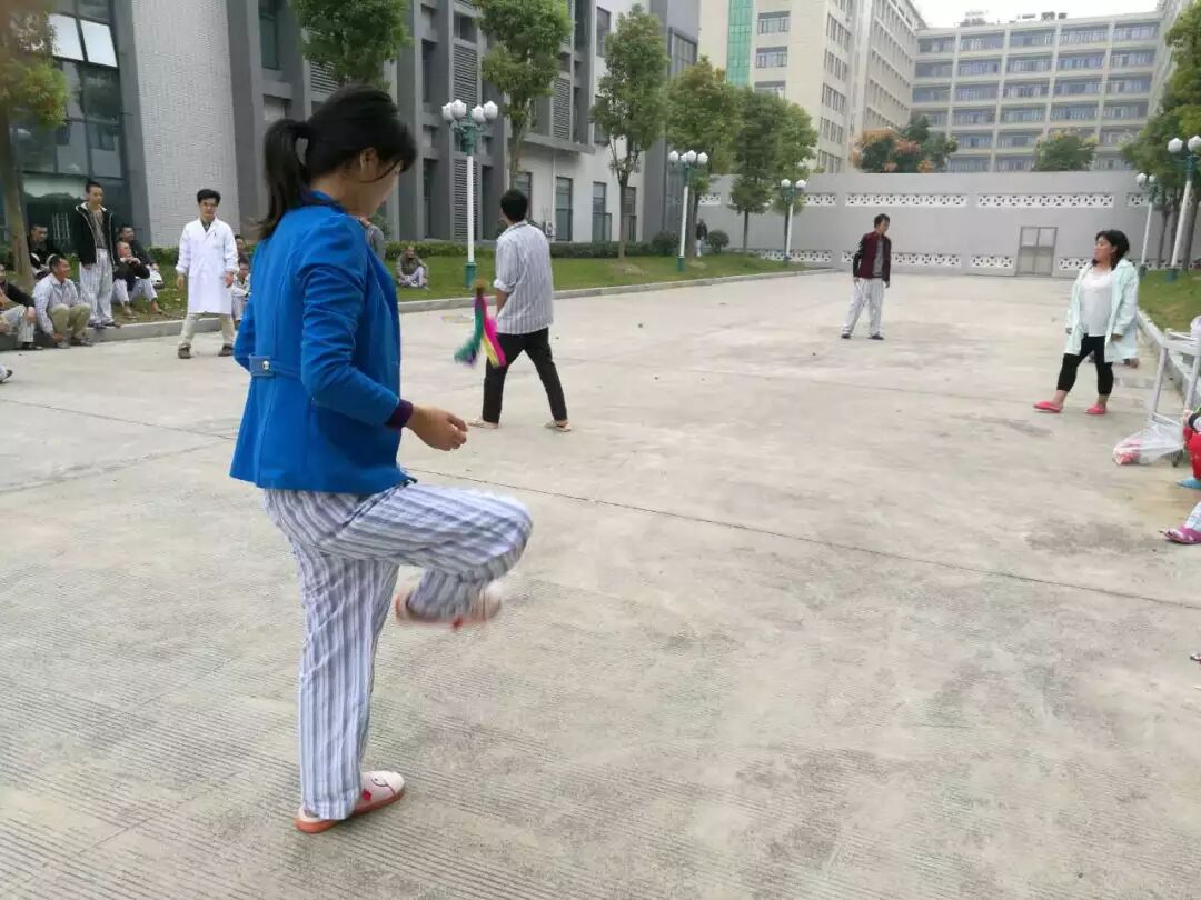 阳光明媚的下午,还会组织封闭病房的患者到工娱活动场地进行户外活动,带领大家打羽毛球、乒乓球、踢毽子、跳大绳。