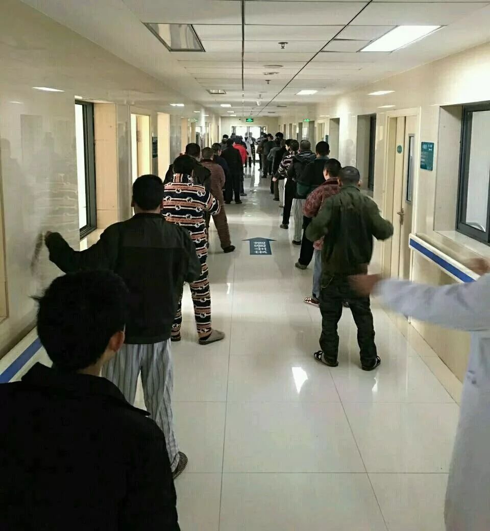 精神科主任刘卫斌介绍,每天早上起床和午休后,医护人员都会组织病人做广播体操。