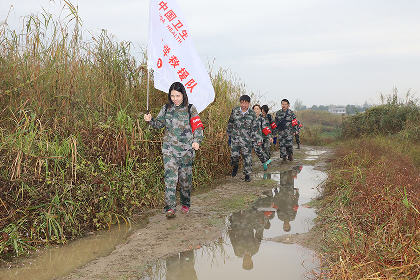 随着副院长唐忠斌的一声令下,9:48分第一支队伍出发,后每隔3分钟依次出发一支队伍,队员们高呼着口号一头扎进芦苇荡,“一方有难,八方支援”、“战狼战狼,斗志昂扬”的呼喊声在天空中久久盘旋。